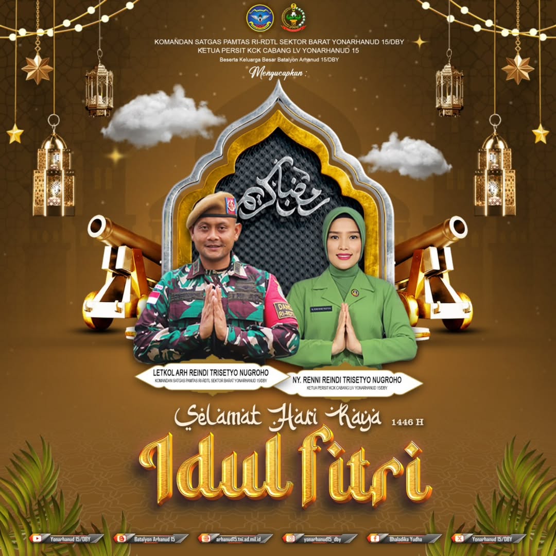 Semarang. Sambut kemenangan di hari yang fitri , personel Korum Yonarhanud 15/DBY Bersama Masyarakat sekitar asrama melaksanakan Ibadah Shalat Idul Fitri 1 Syawal 1446 Hijriah/2025 Masehi yang diselenggarakan di Mesjid Al Kubro Bhaladika. Di pimpin oleh Imam dan Khatib, Ustad Muhammad Rifqi Muslim Asmaradana. S.H.I. bertempat di Mesjid Al Kubro Bhaladika Yonarhanud 15/DBY. Senin, 31/3/2025. Shalat Idul Fitri merupakan shalat yang dilaksanakan pada saat hari Raya Idul Fitri (lebaran). Bahwa Shalat tesebut hanya dilaksanakan atau lakukan setelah melaksanakan puasa Ramadhan selama sebulan penuh oleh umat Islam. Adapun tujuan perayaan Idul…