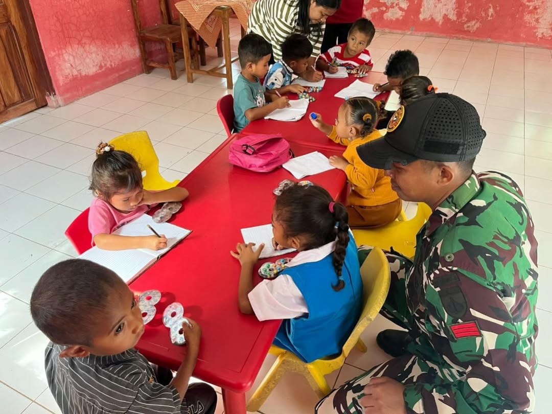 Nilulat, 7 Maret 2025 – Dalam upaya menanamkan rasa cinta tanah air sejak dini, anggota Satgas Pamtas RI-RDTL Sektor Barat Yon Arhanud 15/DBY dari Pos Nilulat melaksanakan kegiatan Wawasan Kebangsaan (Wasbang) bagi siswa-siswi PAUD Melati Nilulat di Desa Nilulat, Kecamatan Bikomi Nilulat, Kabupaten Timor Tengah Utara (TTU).