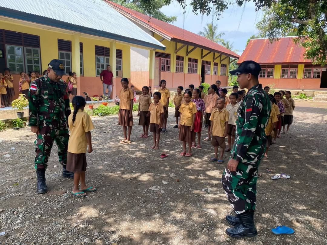 Satgas Pamtas RI-RDTL Sektor Barat Yonarhanud 15/DBY Berikan Pelatihan Disiplin di SD Buk