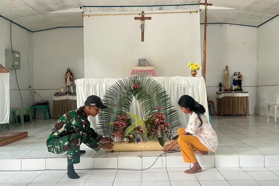 Naibenu, 12 Maret 2025 – Dalam rangka memperingati ulang tahun Kapela Dusun Nelu yang ke-25, Satgas Pamtas RI-RDTL Sektor Barat Yonarhanud 15/DBY Pos Nelu melaksanakan kegiatan karya bakti di Kapela Dusun Nelu, Desa Sunsea, Kecamatan Naibenu, Kabupaten Timor Tengah Utara (TTU). Kegiatan ini dipimpin oleh Sertu Dikmanto bersama tujuh orang anggota pos, serta melibatkan pemuda Karang Taruna Dusun Nelu. Bapak Martinus Abbani (42), selaku kepala lingkungan, menyampaikan rasa terima kasihnya atas partisipasi anggota Satgas Pamtas dalam mempercantik Kapela. “Kami sangat berterima kasih kepada anggota Satgas Pamtas RI-RDTL Yonarhanud 15/DBY yang…