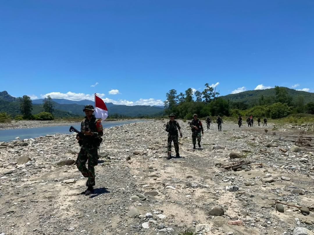 Satgas Pamtas RI-RDTL Yonarhanud 15/DBY Laksanakan Patroli Patok Batas Negara di Sungai Noel Besi