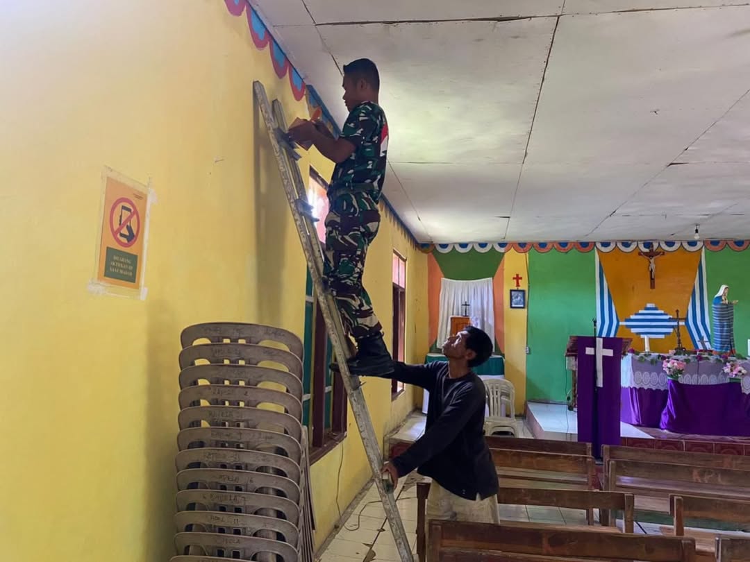 TTU, 4 Mei 2025 — Dalam rangka memperkuat kemanunggalan TNI dengan rakyat serta meningkatkan kepedulian terhadap tempat ibadah di wilayah perbatasan, lima personel Pos Oelbinose dari Satgas Pamtas RI–RDTL Sektor Barat Yonarhanudse 15/DBY yang dipimpin oleh Sertu Achmad Alfian Amila melaksanakan kegiatan Bhakti TNI di Kapela Santo Yoseph Oelbinose, Dusun Oelbinose, Desa Tasinifu, Kecamatan Mutis, Kabupaten Timor Tengah Utara (TTU). Dalam kegiatan tersebut, Satgas memberikan bantuan berupa cat dan kuas untuk memperbarui tampilan kapela yang mulai kusam. Upaya ini mendapat apresiasi hangat dari masyarakat setempat. Bapak Vincen, yang mewakili Romo…