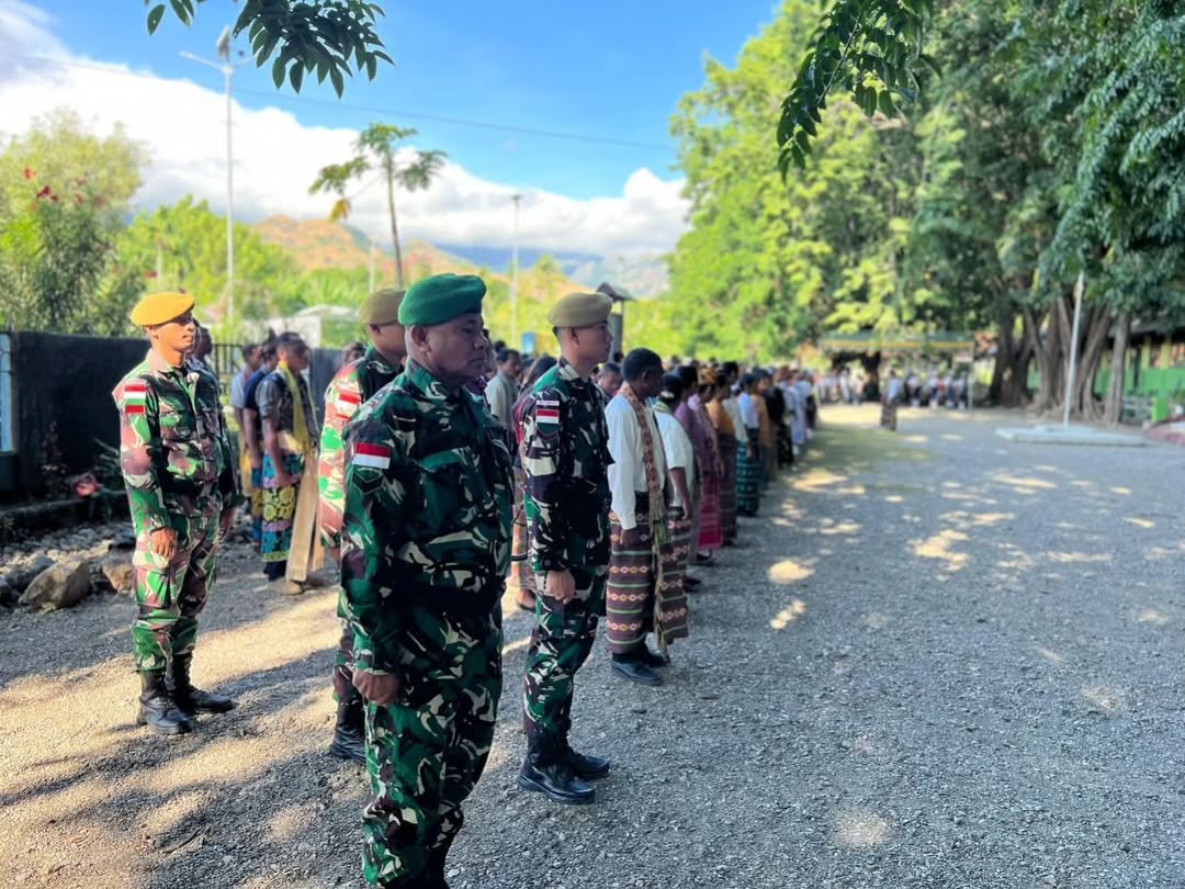 Tiga Pos Satgas Pamtas Yonarhanud 15/DBY Hadiri Upacara Bendera di Kecamatan Mutis, Perkuat Kebersamaan dan Nasionalisme di Perbatasan