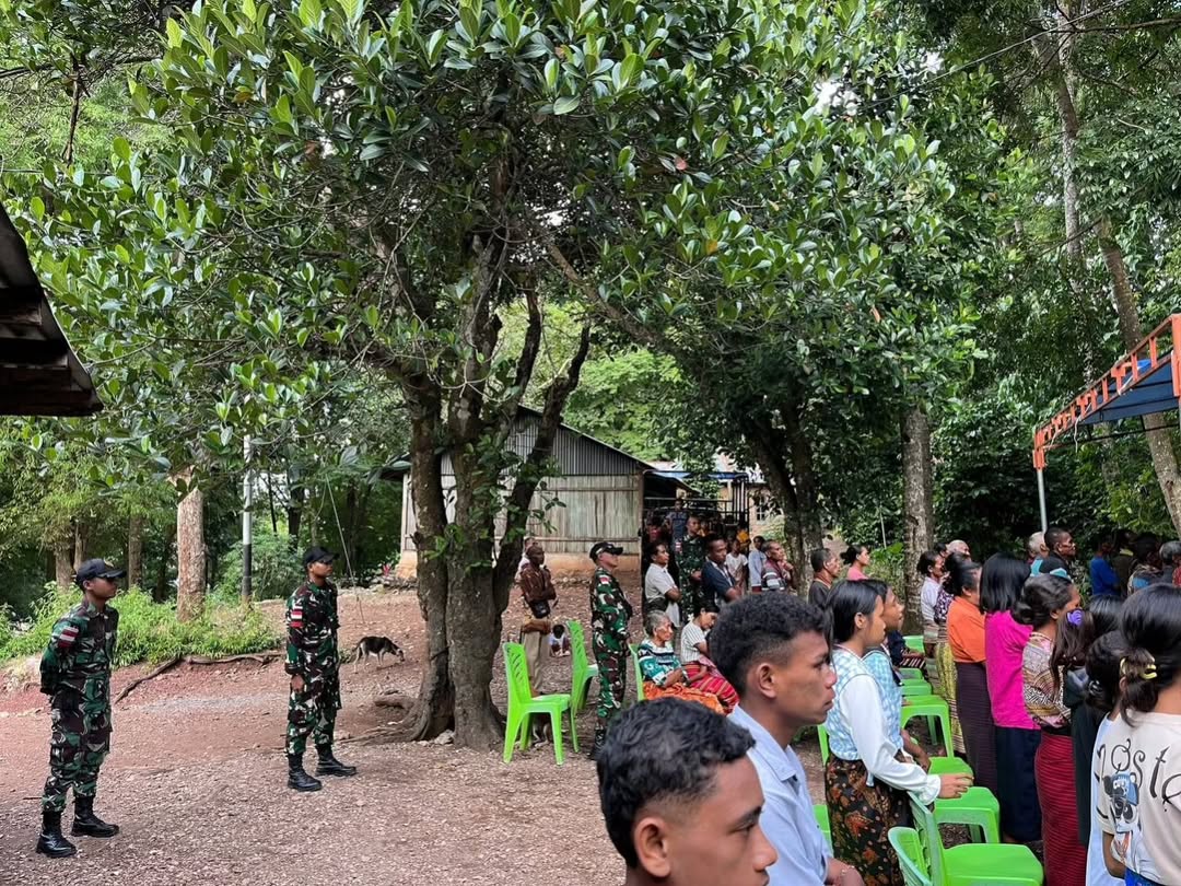 TTU, 8 Mei 2025 – Satgas Pengamanan Perbatasan RI-RDTL Sektor Barat dari Yonarhanud 15/DBY yang bertugas di Pos Inbate, turut menghadiri acara Misa Syukur 30 hari mengenang wafatnya Alm. Yanila Eko, warga Desa Inbate, Kecamatan Bikomi Nilulat, Kabupaten Timor Tengah Utara. Dipimpin langsung oleh Danpos Inbate, Lettu Arh Susandar, tujuh personel Satgas ikut serta dalam kegiatan yang berlangsung penuh khidmat pada Kamis, 8 Mei 2025. Kehadiran personel Satgas ini sebagai bentuk kepedulian dan kedekatan dengan masyarakat perbatasan. “Kami merasa terhormat bisa ikut mendoakan dan mengenang almarhumah bersama warga. Ini juga…
