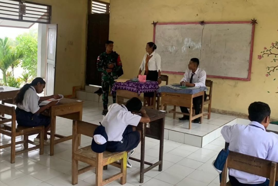 Nunpo, 8 Mei 2025 – Dalam rangka mendukung kelancaran pelaksanaan Ujian Nasional, personel Satgas Pamtas RI–RDTL Sektor Barat Yonarhanud 15/DBY dari Pos Haumeniana turut hadir di SMP Satap Negeri Nunpo, Kecamatan Bikomi, Kabupaten Timor Tengah Utara. Kegiatan ini dipimpin oleh Serda Angga Aeful bersama dua orang anggota pos. Kehadiran mereka untuk membantu proses pengawasan sekaligus memberikan semangat kepada siswa-siswi kelas 9 yang sedang mengikuti Ujian Nasional kelulusan. Kepala Sekolah SMP Satap Nunpo mengapresiasi kehadiran anggota Satgas yang turut menciptakan suasana aman dan tertib selama ujian berlangsung. “Kami merasa terbantu dan…