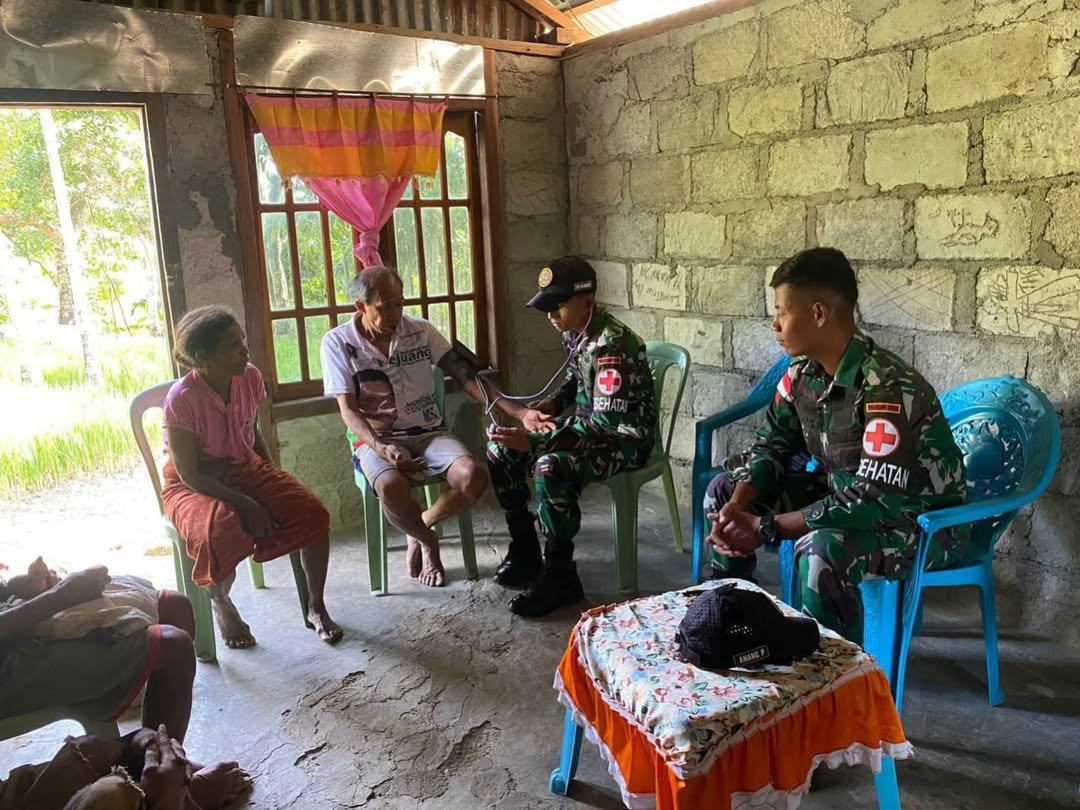 Kegiatan tersebut dipimpin oleh Praka Fendy, tenaga kesehatan Pos Oelbinose, bersama satu orang rekannya. Mereka menyambangi rumah-rumah warga untuk memberikan pemeriksaan kesehatan dan pengobatan ringan secara langsung di lokasi.