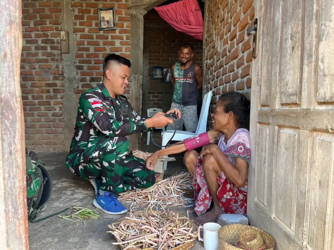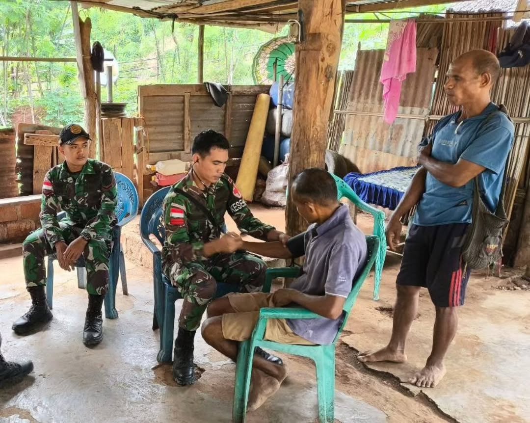 Peduli akan kesehatan masyarakat, Satgas Pamtas RI-RDTL Yonarhanud 15/DBY laksanakan pengobatan keliling ke rumah-rumah masyarakat kegiatan kesehatan keliling disalah satu rumah di dsn trans desa Netemnanu selatan Kec Amfoang Timu, Selasa (13/5/2025). Kesehatan merupakan hal utama yang harus dijaga dan dirawat oleh seluruh kalangan. Melalui pelayanan kesehatan gratis yang dilakukan oleh Pos Oepoli Pantai Satgas Pamtas RI-RDTL Yonarhanud 15/DBY dengan berkeliling dari rumah ke rumah masyarakat, pos satgas mengontrol dan mengawasi kesehatan masyarakat yang ada di sekitar pos. Seperti yang disampaikan oleh Sertu Jatmiko, Danpos Oepoli Pantai Satgas Pamtas RI-RDTL…