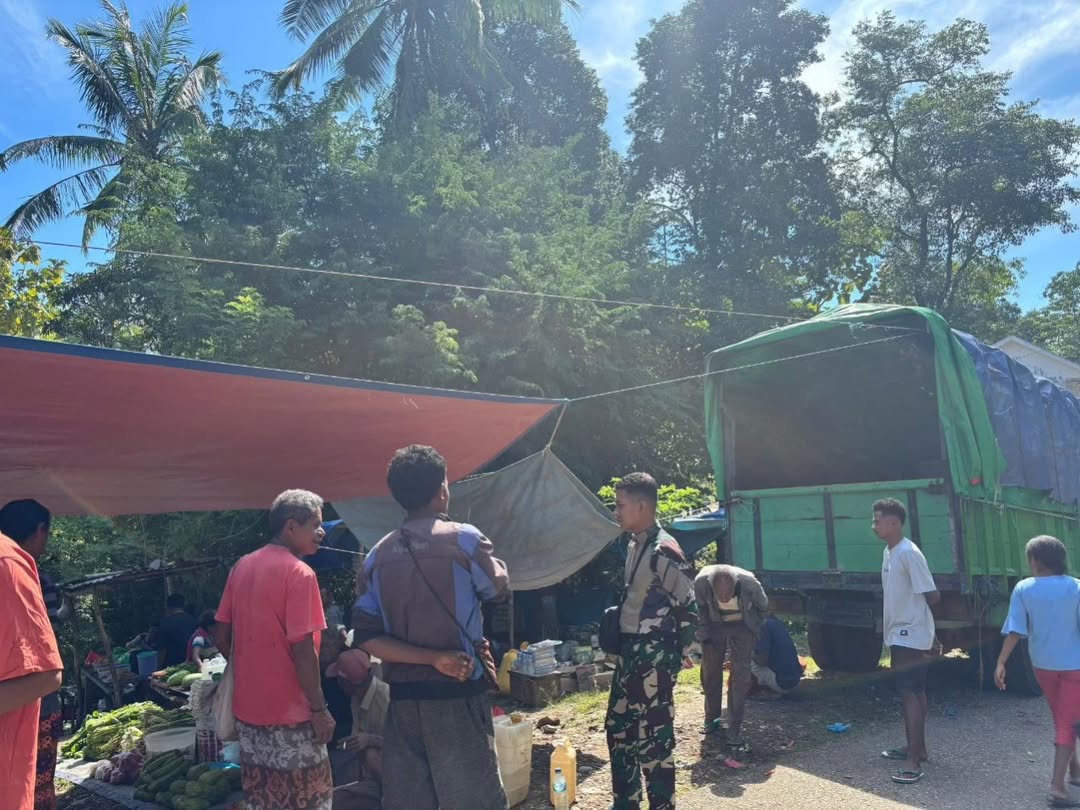 Sunsea, 12 Mei 2025 — Dalam rangka menciptakan rasa aman dan tertib bagi masyarakat perbatasan, Satgas Pamtas RI–RDTL sektor barat dari Yonarhanud 15/DBY terus aktif hadir di tengah-tengah kegiatan warga. Personel Pos Nelu yang dipimpin oleh Praka Muhammad Saefudin bersama empat anggota lainnya melaksanakan kegiatan pengamanan di pasar tradisional Desa Sunsea, Kecamatan Naibenu, Kabupaten Timor Tengah Utara. Kehadiran personel Satgas di pasar tersebut bertujuan untuk membantu mengatur arus lalu lintas di sekitar pasar dan menciptakan suasana yang tertib, nyaman, serta menjalin komunikasi positif dengan masyarakat. “Membantu menjaga keamanan dan ketertiban…