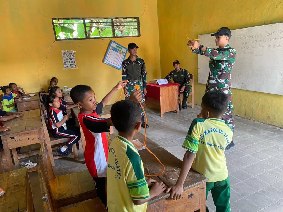 “Kami merasa senang dan terbantu dengan kehadiran anggota Satgas. Anak-anak sangat antusias belajar bersama mereka,” ungkap salah satu guru SDK Inbate.
