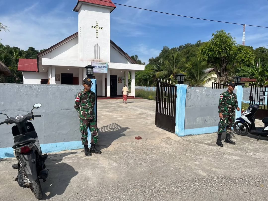 Sementara itu, di wilayah SSK II, personel Pos Inbate yang dipimpin oleh Pratu Misbachul Munir bersama empat anggota lainnya, turut melaksanakan pengamanan ibadah di Gereja Katolik Yohanes Pemandi, Desa Inbate, Kecamatan Bikomi Nilulat. Kehadiran TNI dalam kegiatan ini menjadi bentuk nyata dukungan terhadap kehidupan keagamaan masyarakat setempat.