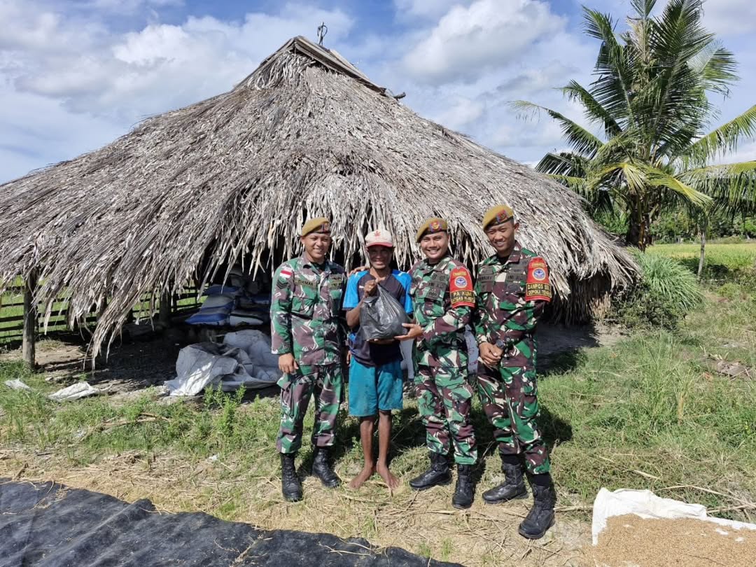 Kupang, NTT – Wujud nyata kepedulian terhadap masyarakat perbatasan terus ditunjukkan oleh Satgas Pamtas RI–RDTL Sektor Barat Yonarhanud 15/DBY. Pada Kamis, 22 Mei 2025 personel dari Mako Satgas bersama personel Pos Oepoli Tengah melaksanakan kegiatan pembagian bingkisan kepada warga yang membutuhkan di Desa Netemnanu Utara, Kecamatan Amfoang Timur, Kabupaten Kupang.
