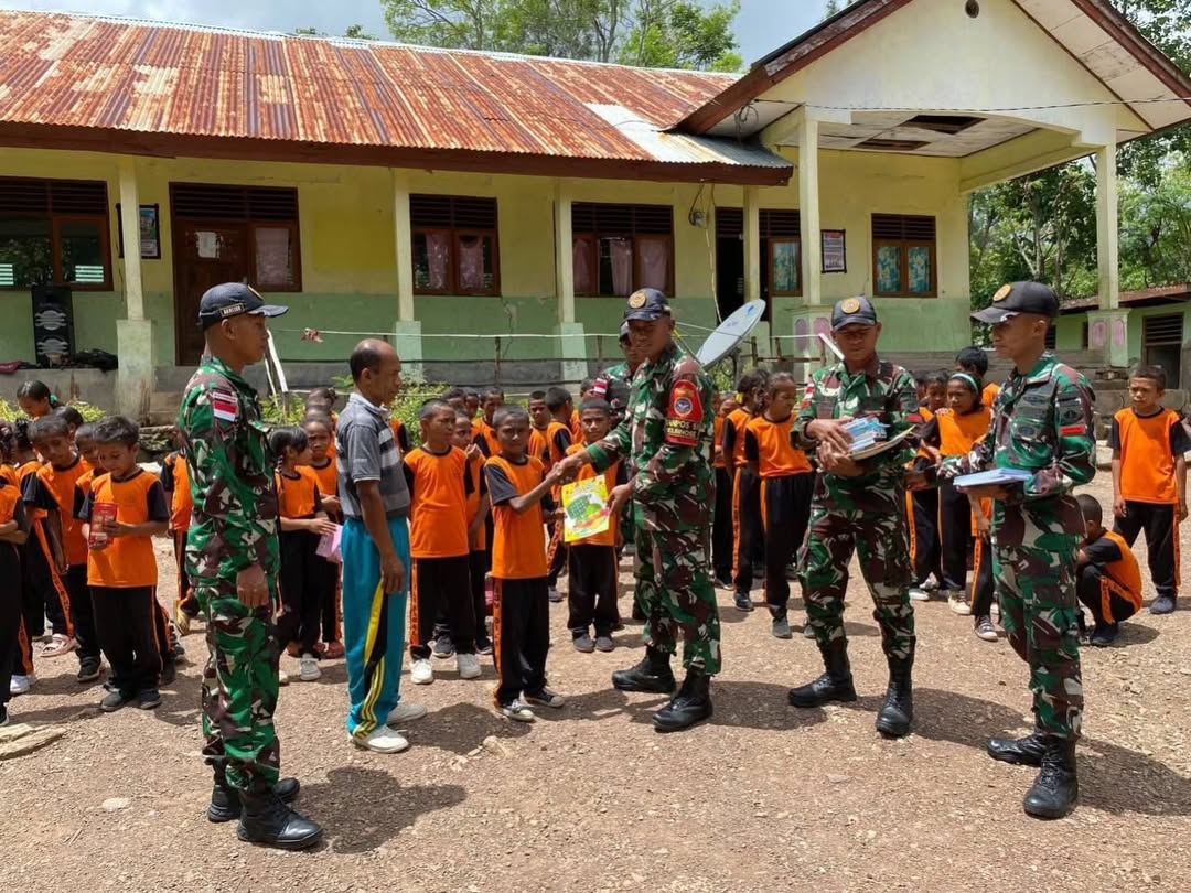 Sebagai bentuk nyata kepedulian terhadap pendidikan anak-anak di wilayah perbatasan, Satgas Pamtas RI–RDTL Sektor Barat Yonarhanud 15/DBY melalui Pos Oelbinose melaksanakan kegiatan sosial pembagian buku baca, alat tulis, buku gambar, dan crayon kepada siswa dan guru SD Negeri Oelbinose di Dusun Tasinifu, Kecamatan Mutis, Kabupaten Timor Tengah Utara.