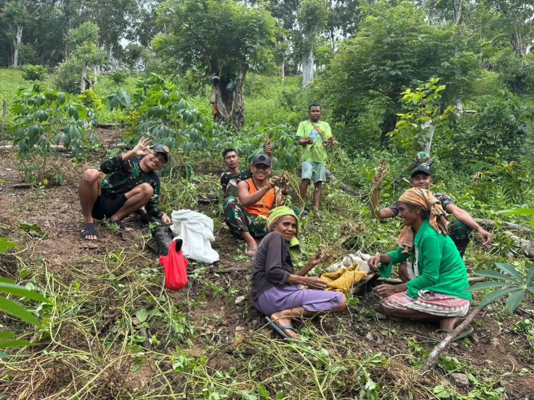 Naibenu, 18 Mei 2025 — Dalam upaya mempererat hubungan dengan masyarakat serta mendukung ketahanan pangan di wilayah perbatasan, personel Satgas Pamtas RI–RDTL Sektor Barat dari Pos Nelu yang dipimpin oleh Sertu Dikmanto bersama empat anggota melaksanakan kegiatan karya bakti panen kacang tanah di Dusun Nelu, Desa Sunsea, Kecamatan Naibenu, Kabupaten Timor Tengah Utara (TTU), Nusa Tenggara Timur. Kegiatan berlangsung di kebun milik Bapak Silfester Elu (34), salah satu warga setempat yang menerima langsung bantuan tenaga dari anggota TNI. Dengan semangat gotong royong, para prajurit membantu memanen biji kacang tanah sebagai…