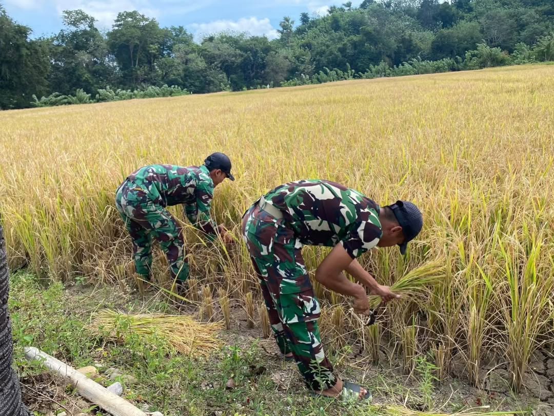 Desa Sono, TTU – 23 Mei 2025Wujud nyata kepedulian dan dukungan terhadap program ketahanan pangan nasional ditunjukkan oleh personel Satgas Pamtas RI–RDTL Sektor Barat Yonarhanud 15/DBY. Kali ini, personel Pos Nino yang dipimpin oleh Danpos Serka Didik Kurniawan bersama tiga anggota pos terjun langsung membantu warga memanen padi di sawah milik Bapak Baltsar, warga Desa Sono, Kabupaten Timor Tengah Utara. Kegiatan ini merupakan bagian dari komitmen Satgas dalam mendukung swasembada pangan sekaligus memperkuat ketahanan pangan lokal, sejalan dengan program pemerintah untuk menjaga ketersediaan stok beras nasional melalui penguatan lumbung pangan…
