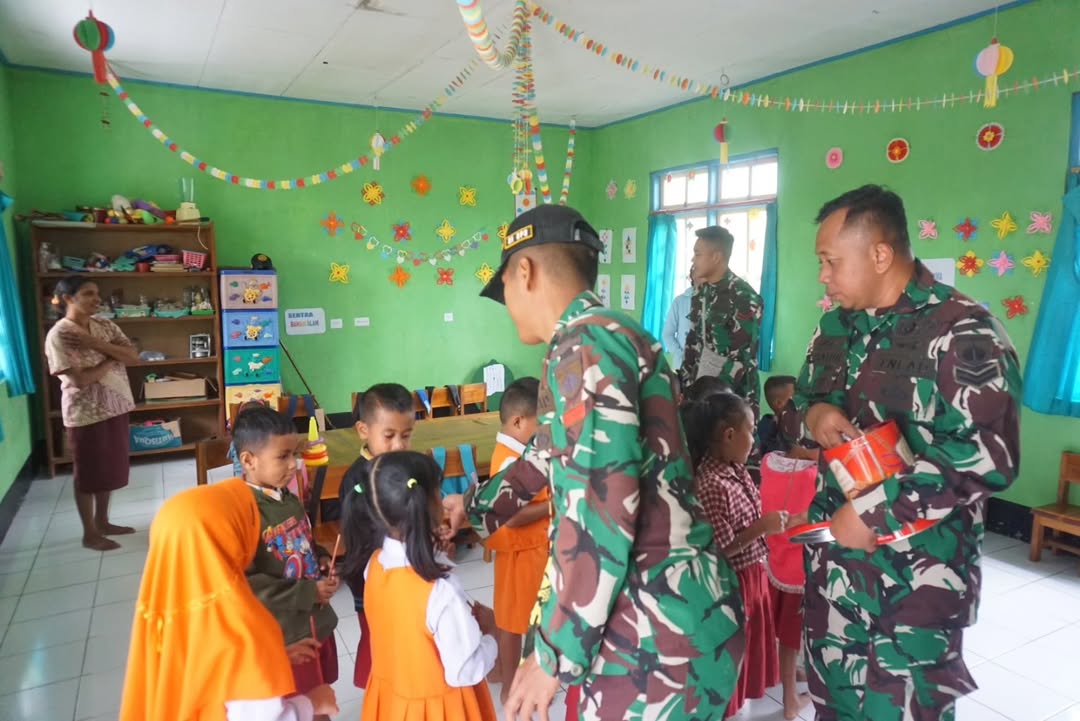 TTU, 6 Juni 2025 – Dalam rangka mempererat hubungan dengan masyarakat perbatasan dan mendukung pendidikan usia dini, Satgas Pamtas RI–RDTL Sektor Barat Yonarhanud 15/DBY melaksanakan kegiatan Pengajaran dan Pendidikan (Gadik) yang berlangsung di TK Dharma Wanita, Desa Eban, Kecamatan Miomaffo Barat, Kabupaten Timor Tengah Utara. Kegiatan yang dipimpin langsung oleh Lettu Arh Kharis Dwiyanto selaku Perwira Seksi Teritorial Satgas, bersama lima orang anggota Mako Satgas, berlangsung dalam suasana ceria dan penuh semangat. Acara diawali dengan kegiatan interaktif seperti menyanyi dan bermain game secara kelompok yang disambut antusias oleh anak-anak. Keceriaan…