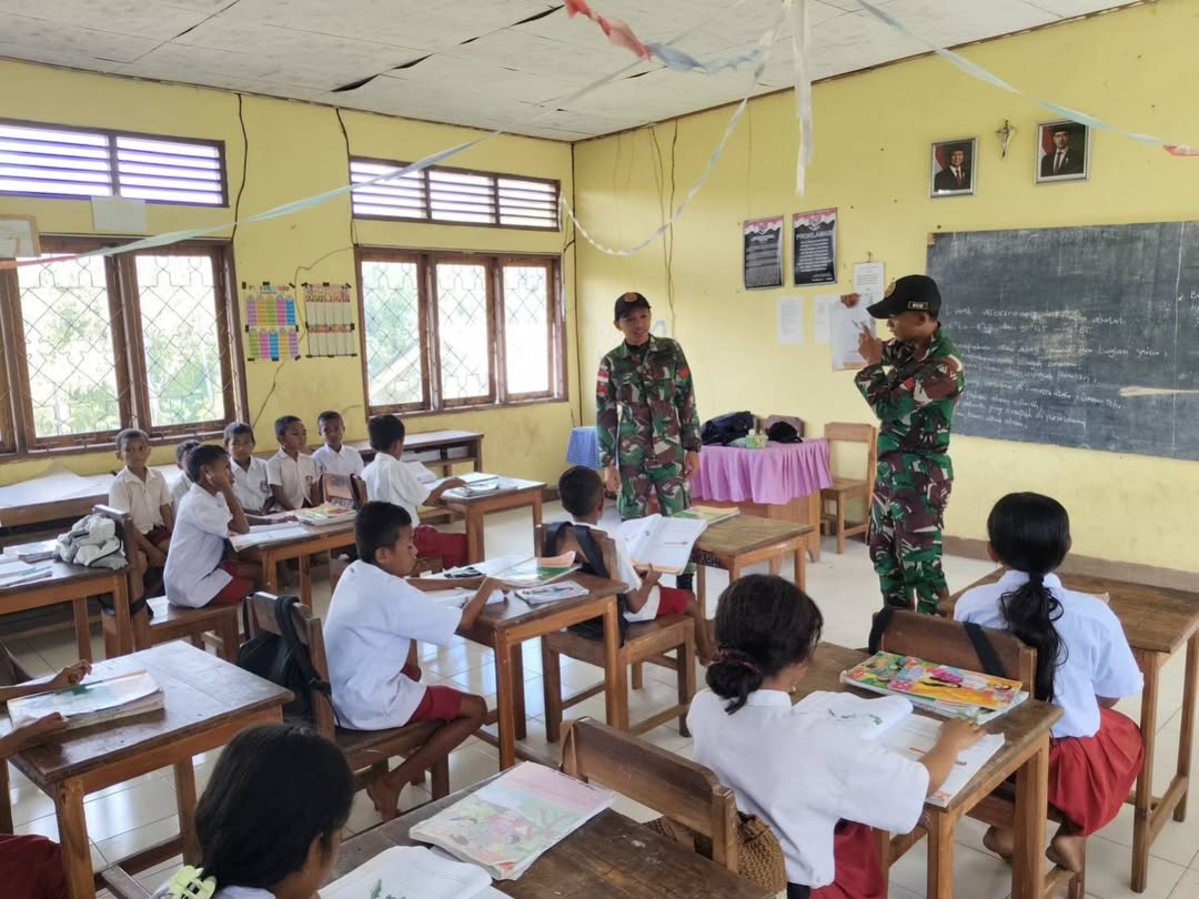 Naibenu, 8 Juni 2025 – Dalam rangka membangun generasi muda yang cinta tanah air dan memperkuat semangat kebangsaan di wilayah perbatasan, personel Pos Nelu Satgas Pamtas RI–RDTL Sektor Barat Yonarhanud 15/DBY melaksanakan kegiatan Gadik (Tenaga Pengajar Pendamping) di SDK Bakitolas, Dusun Bakitolas, Desa Bakitolas, Kecamatan Naibenu, Kabupaten Timor Tengah Utara, Kegiatan ini dipimpin oleh Praka Muh Alwi Basori bersama dua orang anggota lainnya. Mereka memberikan materi pembelajaran dan motivasi kepada para siswa, sekaligus menanamkan nilai-nilai kedisiplinan, nasionalisme, dan semangat belajar. Kehadiran TNI disambut antusias oleh para siswa dan para guru.…