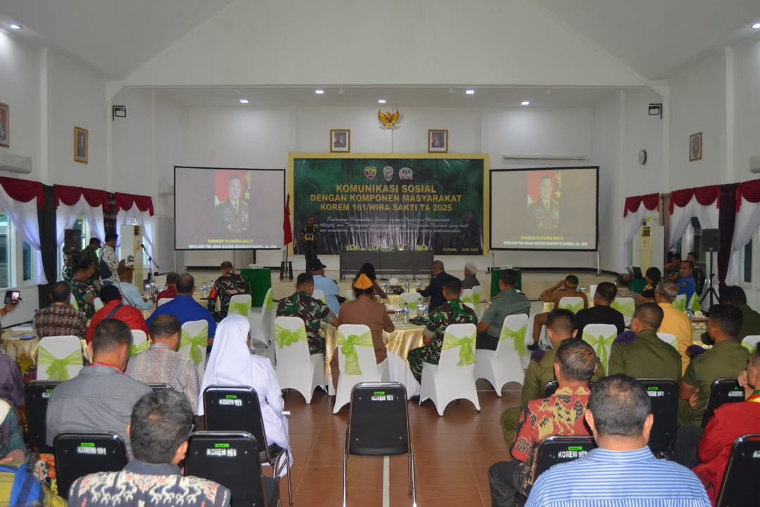 Kupang, 9 Juni 2025 – Komandan Korem 161/Wira Sakti Brigjen TNI Joao Xavier Barreto Nunes, S.E., M.M. secara resmi membuka kegiatan Komunikasi Sosial (Komsos) dengan segenap komponen masyarakat di Aula Sudirman Makorem 161/Wira Sakti, Jl. W.Z. Lalamentik, Oebufu, Kota Kupang. Dalam amanatnya, Brigjen TNI Joao Xavier menegaskan peran penting TNI sebagai komponen utama pertahanan negara dalam pelaksanaan pembinaan teritorial, sesuai dengan amanat Undang-Undang Republik Indonesia Nomor 34 Tahun 2004. “TNI memiliki tugas utama memberdayakan wilayah pertahanan serta membantu pemerintah daerah melalui pembinaan teritorial. Kegiatan Komsos ini adalah salah satu bentuk…