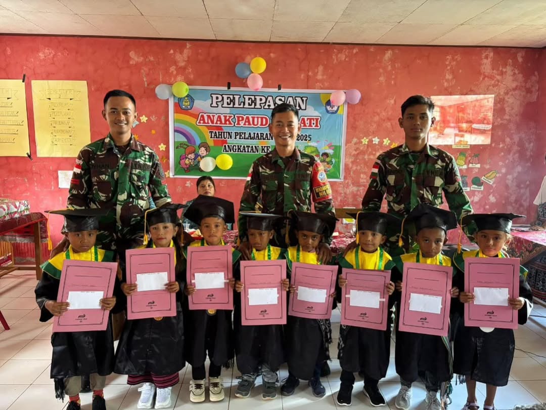 Satgas Pamtas Pos Nilulat Hadiri Wisuda PAUD Melati Beri Dukungan Semangat Belajar Anak-Anak Perbatasan