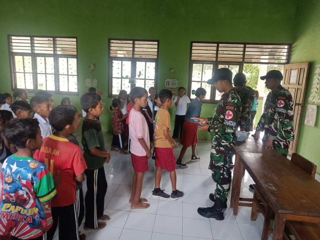 Nilulat, 27 Juni 2025 – Satgas Pamtas RI-RDTL sektor barat, yang dipimpin oleh Yonarhanud 15/DBY, berhasil melaksanakan kegiatan pembagian vitamin di Sekolah Dasar Kebangsaan (SDK) Nilulat, Desa Nilulat, Kecamatan Bikomi Nilulat, Kabupaten TTU. Personel Pos Nilulat dilakukan oleh Tim Kesehatan Pos Praka Subekhi dan tiga orang rekan dari Pos Nilulat untuk membagikan vitamin kepada siswa-siswi SDK Nilulat. Kegiatan ini bertujuan untuk menjaga kesehatan dan meningkatkan daya tahan tubuh siswa-siswi. Pembagian vitamin merupakan upaya untuk memastikan bahwa siswa-siswi mendapatkan asupan nutrisi yang cukup, terutama dalam hal vitamin yang penting untuk pertumbuhan…