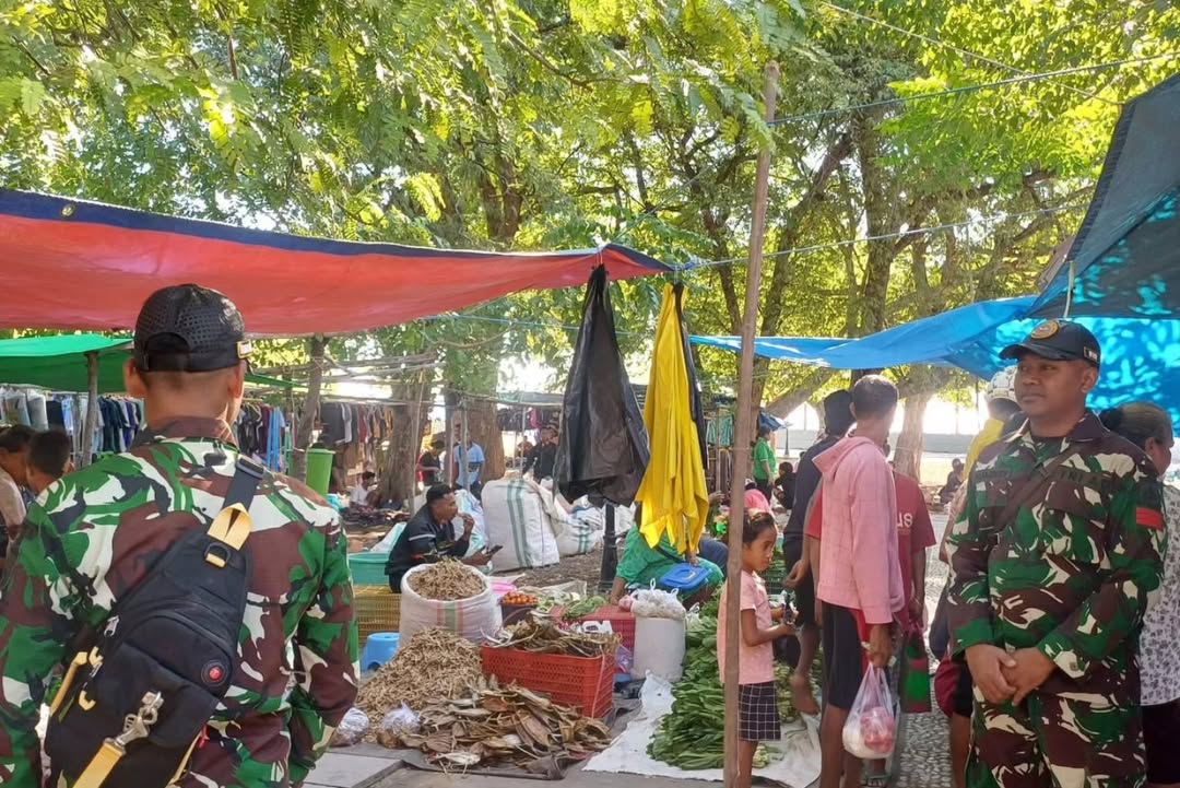 Kegiatan ini bertujuan untuk memastikan aktivitas jual beli di pasar berjalan aman, tertib, dan nyaman bagi seluruh masyarakat. Kehadiran personel TNI di tengah-tengah keramaian pasar mendapat sambutan hangat dari warga.