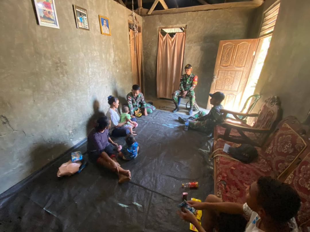 Dipimpin oleh Serda Hermantoro selaku Wadanpos, sebanyak empat orang personel Pos Naekake berkunjung ke rumah Mama Akulina (51), warga Desa Naekake B, Kecamatan Mutis, Kabupaten Timor Tengah Utara.
