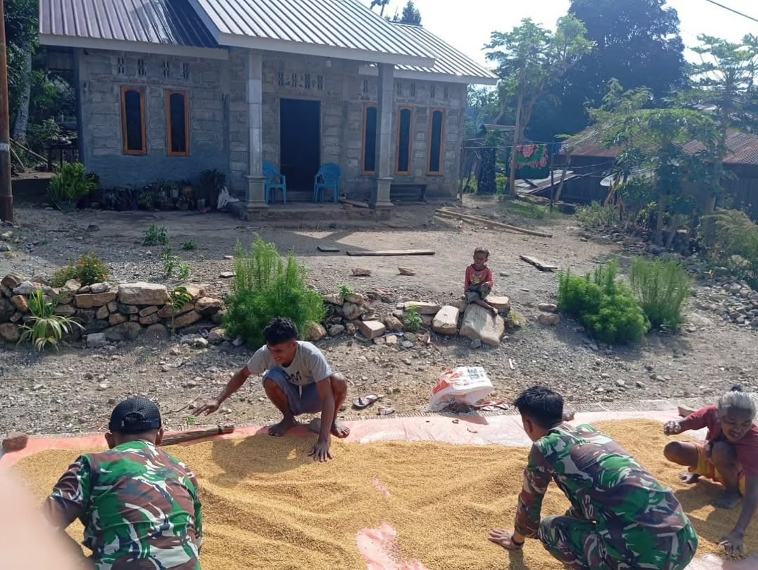 Nainaban, 25 Juni 2025 — Bentuk kepedulian terhadap masyarakat terus ditunjukkan oleh Satgas Pamtas RI–RDTL Sektor Barat Yonarhanud 15/DBY. Tiga personel Pos Baen yang dipimpin oleh Serda Dio Alif terjun langsung membantu warga menjemur padi di rumah Bapak Ose (47), warga Desa Nainaban, Kecamatan Bikomi Nilulat, Kabupaten Timor Tengah Utara.