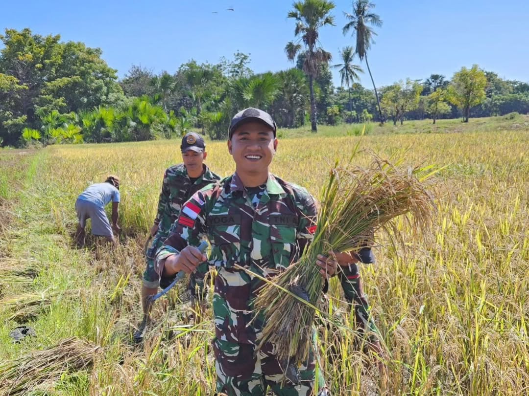 Dipimpin oleh Wadanpos Sertu Baswara, enam personel Pos Oepoli Tengah terjun langsung membantu proses panen padi milik Bapak Marcel Quil (55), warga Desa Oepoli, Kecamatan Amfoang Timur, Kabupaten Kupang.