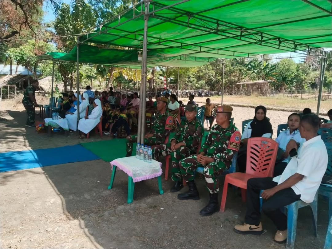 Oepoli, Minggu 15 Juni 2025 — Satgas Pamtas RI – RDTL Sektor Barat Yonarhanud 15/DBY terus menunjukkan kepeduliannya terhadap dunia pendidikan di wilayah perbatasan. Kali ini, personel Pos Oepoli Tengah yang dipimpin langsung oleh Dankipam 1 Kapten Arh Aminudin bersama tiga orang anggota pos, turut menghadiri dan mendukung kegiatan wisuda kelulusan anak-anak PAUD yang digelar di kediaman Ibu Afrida Oepoli, Desa Netemnanu Utara, Kecamatan Amfoang Timur, Kabupaten Kupang.