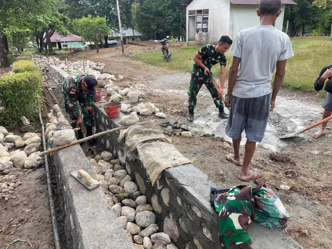 Timor Tengah Utara, 10 Juni 2025 — Satgas Pengamanan Perbatasan (Pamtas) RI-RDTL sektor barat dari Yonarhanud 15/DBY kembali menunjukkan kepeduliannya terhadap masyarakat perbatasan. Personel Pos Naekake yang dipimpin oleh Serda Suyadi bersama tiga anggota pos melaksanakan kegiatan karya bakti membantu warga membangun saluran air di Desa B, Kecamatan Mutis, Kabupaten Timor Tengah Utara. Kegiatan ini merupakan bagian dari program teritorial Satgas Pamtas yang bertujuan mempererat hubungan TNI dengan masyarakat sekaligus membantu pemenuhan kebutuhan infrastruktur dasar di wilayah perbatasan. “Dengan gotong royong seperti ini, kami ingin hadir sebagai bagian dari solusi…