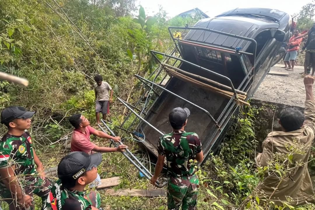 Kefamenanu, 2 Juli 2025 – Sebanyak 12 personel dari Pos Nelu, yang dipimpin oleh Wadanpos Sertu Dikmanto, melaksanakan kegiatan evakuasi kendaraan roda empat milik Bapak Andik Kase (41), warga Oesoko, Kecamatan Wini, yang mengalami kecelakaan akibat rem blong di Dusun Nelu RT 11/RW 06, Desa Sunsea, Kecamatan Naibenu, Kabupaten Timor Tengah Utara. Kecelakaan terjadi ketika mobil Cery yang ditumpangi 36 orang dewasa, termasuk sopir, masuk ke dalam jurang sedalam sekitar 2 meter. Beruntung, semua penumpang selamat meskipun mengalami sedikit lecet-lecet. Bapak Andik Kase dan warga setempat mengucapkan terima kasih kepada…