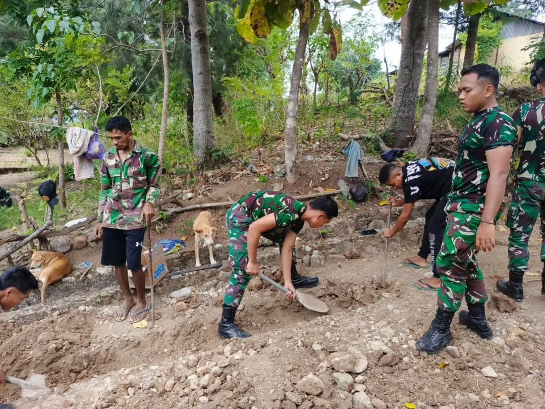 Satgas Pamtas RI-RDTL Laksanakan Karya Bakti Pembuatan Saluran Air di Desa Inbate