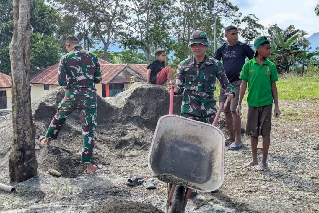 Desa Haumeniana, 01 Juli 2025 – Satgas Pamtas RI-RDTL Sektor Barat Yon Arhanud 15/DBY melaksanakan kegiatan karya bakti pengecoran lapangan voli di Desa Haumeniana, Kecamatan Bikomi Nilulat, Kabupaten Timor Tengah Utara (TTU). Kegiatan ini diikuti oleh tujuh orang personel Pos Haumeniana yang dipimpin oleh Serda J. Butar-butar. Warga setempat merasa senang dan mengucapkan terima kasih kepada anggota Satgas Pamtas yang telah berkontribusi dalam penguatan bangunan lapangan voli di Kantor Desa Haumeniana. Kegiatan pengecoran ini dilakukan dengan semangat gotong royong antara anggota Satgas dan masyarakat. “Kerja sama ini sangat berarti bagi…