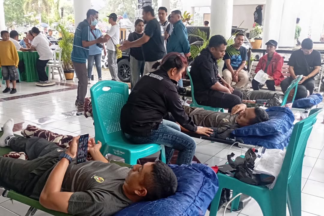 *Kefamenanu, 2 Juli 2025* – Pengurus Palang Merah Indonesia (PMI) cabang Timor Tengah Utara, bekerja sama dengan Pemerintah Kota Kabupaten TTU, mengadakan kegiatan donor darah dalam rangka merayakan Hari Keluarga Nasional (Harganas) tingkat TTU. Acara ini berlangsung di area Car Free Day (CFD) di halaman Kantor Kabupaten TTU. Vemi F. Tefa, A.Md., Kep, Sekretaris PMI TTU, saat diwawancarai media, menjelaskan bahwa aksi donor darah ini diinisiasi oleh Dinas Pengendalian Penduduk dan Keluarga Berencana (KB) serta ikatan penyuluh KB. Kegiatan ini juga melibatkan kolaborasi dengan Satgas Pamtas RI-RDTL Sektor Barat Yonarhanud…