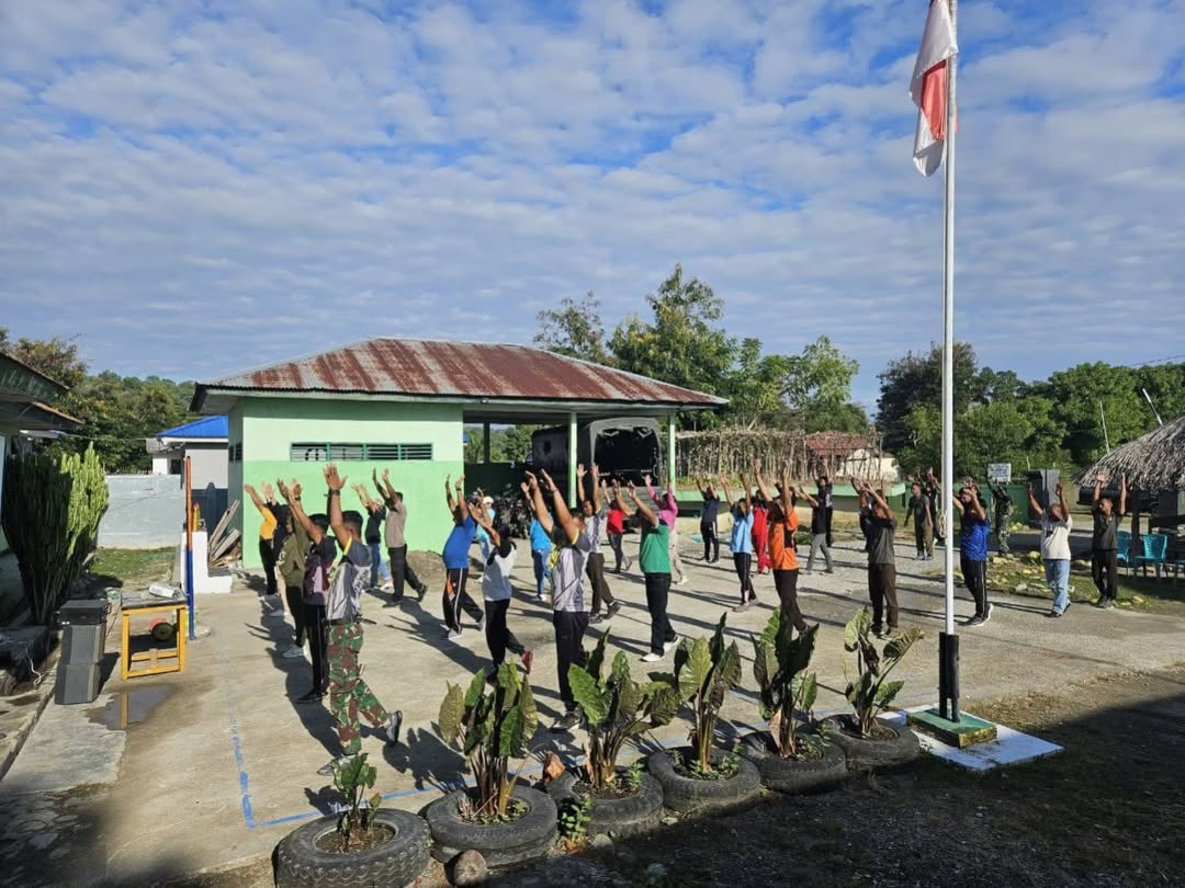 Dsn Oepoli, Desa Netemnanu Utara – Minggu, 6 Juli 2025, Minggu ini, Pos Oepoli Tengah bersama Danki SSK 1 Kapten Arh Aminuddin menggelar kegiatan senam ceria pagi. Acara ini melibatkan Pos AL, Polsek, Puskesmas, dan warga setempat, berlangsung di halaman Pos Oepoli Tengah. Kegiatan senam ini diadakan setiap hari Jumat dengan tujuan menjaga kesehatan dan kebugaran tubuh, serta mempererat silaturahmi antara pemerintah desa, tenaga kesehatan, dan anggota Satgas Pamtas RI-RDTL. Kehangatan dan kebersamaan dalam senam pagi ini semakin memperkuat hubungan antar semua pihak di komunitas.