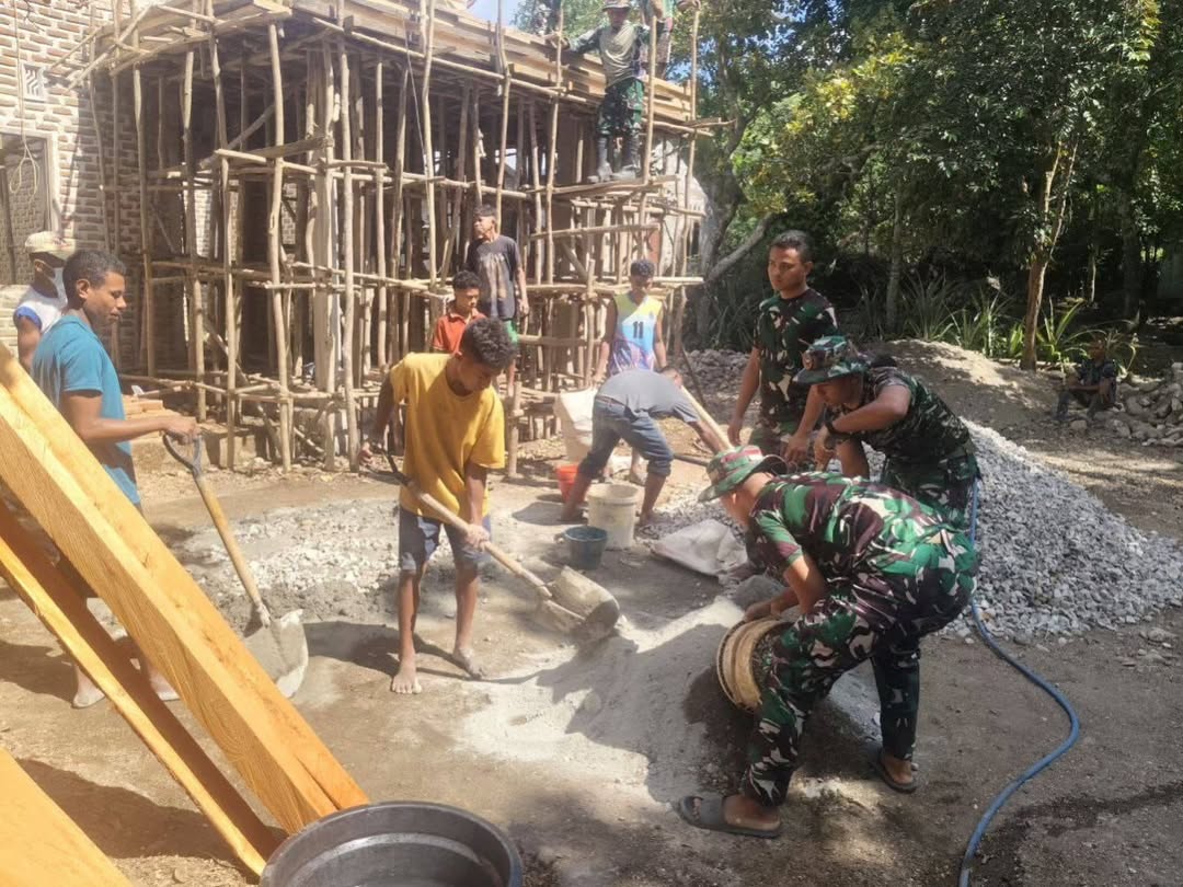Pada 7 Juli 2025 di Dusun Bobkase, Desa Manamas, Kecamatan Naibenu, tiga personel Pos Manamas yang dipimpin oleh Lettu Arh Agung Setiawan melaksanakan kegiatan karya bakti pengecoran teras di rumah Bapak Jack Teme, seorang warga berusia 50 tahun. Bapak Jack Teme menyampaikan rasa terima kasih yang mendalam kepada anggota TNI Pos Manamas Satgas Pamtas RI – RDTL. “Kehadiran mereka sangat membantu kami dalam proses pengecoran teras rumah. Dukungan dari TNI benar-benar berarti bagi masyarakat di daerah perbatasan,” ujarnya. Kegiatan ini menegaskan komitmen Satgas Pamtas untuk tidak hanya menjaga keamanan, tetapi…