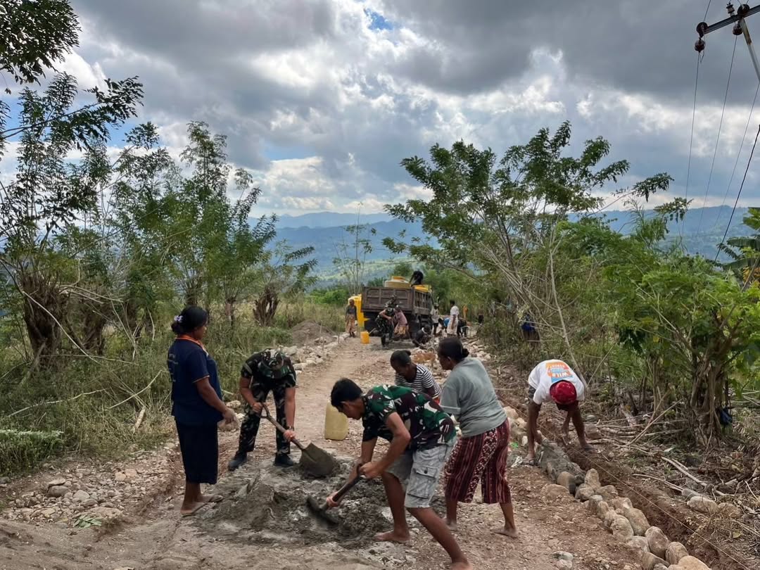 Pada Rabu, 9 Juli 2025, empat personel Pos Inbate yang dilakukan oleh Pratu Fajri melaksanakan kegiatan karya bakti dalam pembuatan pondasi jalan di Desa Inbate, Kecamatan Bikomi Nilulat, Kabupaten Timor Tengah Utara (TTU). Kegiatan ini mendapat sambutan hangat dari masyarakat setempat, termasuk Bapak Desa Inbate, yang mengucapkan terima kasih atas bantuan anggota TNI.