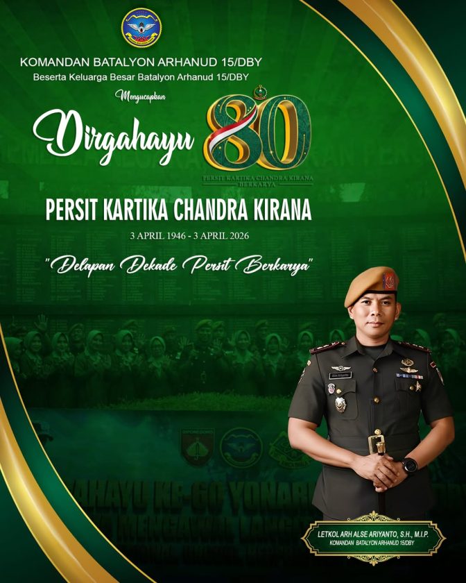 SEMARANG — Bertempat di Masjid Al Qubro Batalyon Arhanud 15/DBY, dilaksanakan doa bersama dalam rangka tasyakuran memperingati Hari Ulang Tahun (HUT) ke-60 Batalyon Arhanud 15/DBY sekaligus kenaikan pangkat periode 1 April 2026. Kegiatan tersebut berlangsung dengan khidmat pada Rabu (01/04/2026).