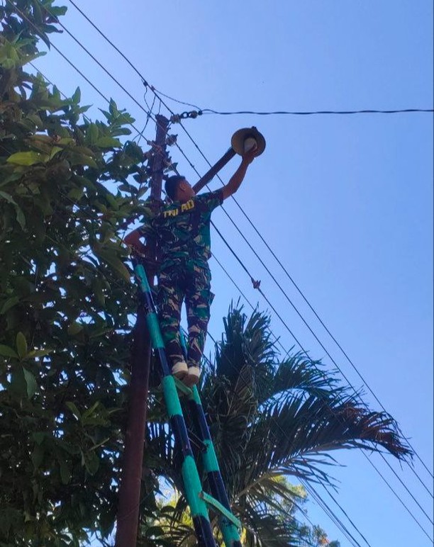 Semarang – Peleton Komunikasi (Tonkom) Yonarhanud 15/DBY melaksanakan pemeliharaan fasilitas penerangan jalan utama didalam satuan dan perkantoran Yonarhanud 15/DBY. Kamis 20/7/2023.