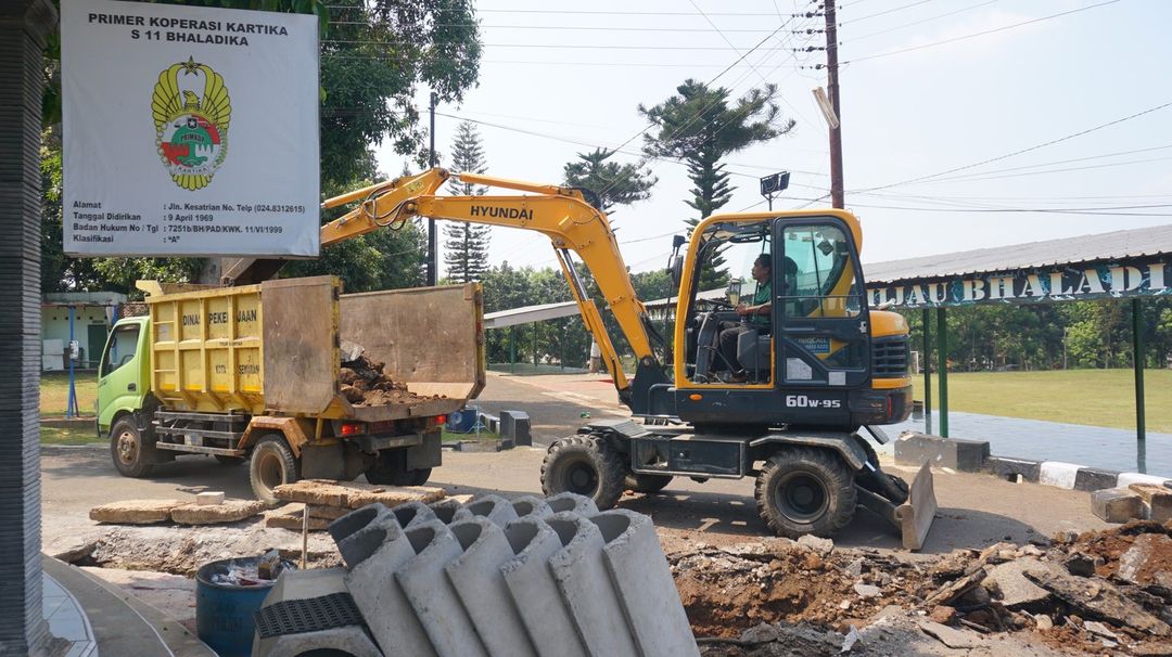 Semarang – Antisipasi datangnya musim penghujan, Batalyon Arhanud 15/DBY mulai memperbaiki saluran air, talud jalan dan gorong-gorong dilingkungan asrama supaya tidak menjadi genangan air pada saat musim penghujan tiba, Rabu 26/7/2023.