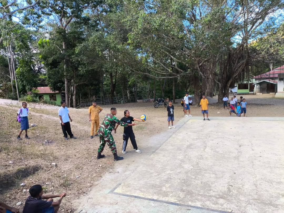 Naibenu, 2 Agustus 2025 – Dalam mendukung perkembangan olahraga di wilayah perbatasan, dua personel Pos Nelu dari Satgas Pamtas RI – RDTL Sektor Barat Yonarhanud 15/DBY, yang dipimpin oleh Wadanpos Sertu Dikmanto, melaksanakan kegiatan pelatihan voli di SMP N Sunbaki, Desa Sunsea, Kecamatan Naibenu, Kabupaten TTU. Kegiatan ini bertujuan mempersiapkan atlet voli untuk bertanding dalam rangka memperingati Hari Kemerdekaan 17 Agustus 2025 di Kabupaten Kefamenanu. Kedatangan anggota Satgas disambut antusias oleh Bapak Guru dan para siswa. Suasana ceria terlihat saat mereka berlatih bersama, berbagi teknik dan strategi permainan voli. “Anak-anak…