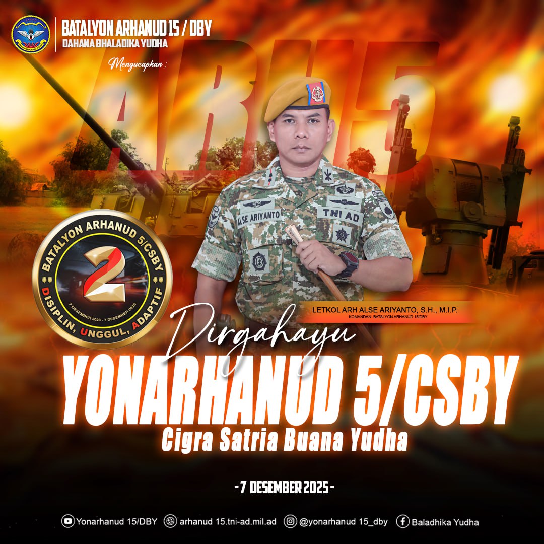 Dirgahayu BATALYON ARHANUD 5/CSBY “Disiplin, Unggul, Adaptif” Desember 31, 2025Desember 31, 2025 adminarh15 Read More
