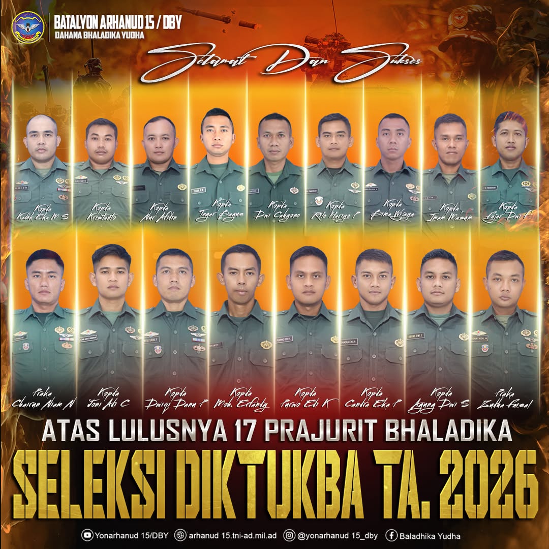 Selamat & Sukses atas Kelulusan Prajurit Yonarhadun 15/DBY Mengikuti Diktukba TNI AD Gelombang 1 TA 2026 Desember 31, 2025Desember 31, 2025 adminarh15 Read More