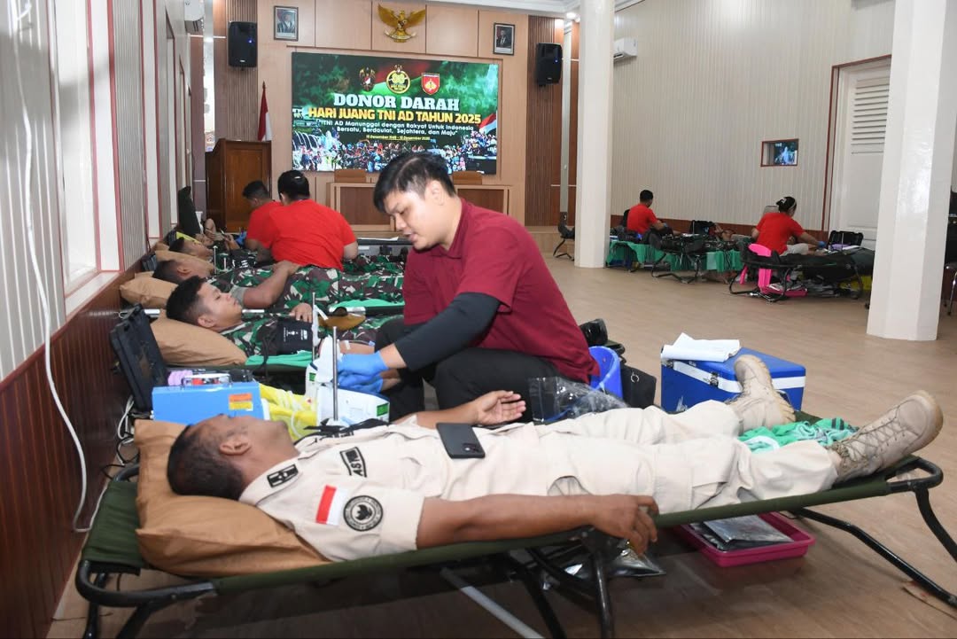 Prajurit Arhanud 15/DBY mengikuti Kegiatan Donor Darah dalam rangka Hari Juang kartika TNI-AD ke 80.