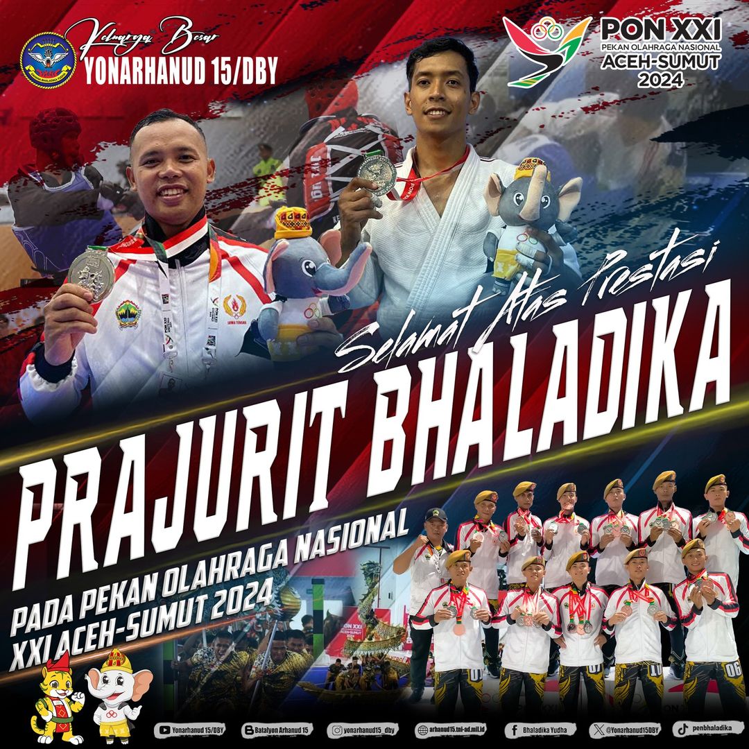 Bada Aceh. Satu lagi prajurit terbaik Yonarhanud 15/DBY yaitu Sertu Ridho Barokalloh meraih medali perak dikelas -66kg Putra cabang olaheaga judo di ajang Pekan Olahraga Nasional (PON) XXI 2024 Aceh-Sumatera Utara (Sumut) yang digelar di GOR Universitas Syiah Kuala (USK), Banda Aceh. Rabu, (11/9/2024). Komandan Batalyon Arhanud 15/DBY, Letkol Arh Reindi Trisetyo Nugroho menyampaikan rasa bangga atas pencapaian yang diraih oleh Sertu Ridho Barokalloh yang membanggakan nama satuan dan Komandan berharap prestasi yang diraih oleh prajurit Bhaladika pada PON XXI Aceh Sumut 2024 semoga dapat menjadi memotivasi bagi prajurit Bhaladika…