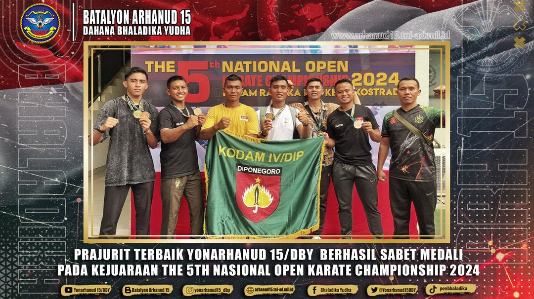Semarang. Ikut dalam ajang Kejurda INKANAS Piala Kapolda Jawa Tengah 2023 Praka Dendi Septian P., Taban Satbak 4 Ton 1 Rai A Yonarhanud 15/DBY berhasil meraih Medali Perak Kelas Komite 60 Kg Putra TNI/Polri dan Praka Candra Eka Pakzi, Tabanhar Sihar 2 Timhar Yonarhanud 15/DBY berhasil meraih Medali Perunggu Kelas Komite 67 Kg Putra TNI/Polri. Senin (20/11/2023) Kejurda INKANAS Piala Kapolda Jateng 2023 digelar di GOR FX Sumardi MA Kompleks AKPOL Kota Semarang yang mempertandingkan 33 kelas umum dan 59 kelas festival pada tanggal 18 dan 19 November 2023.