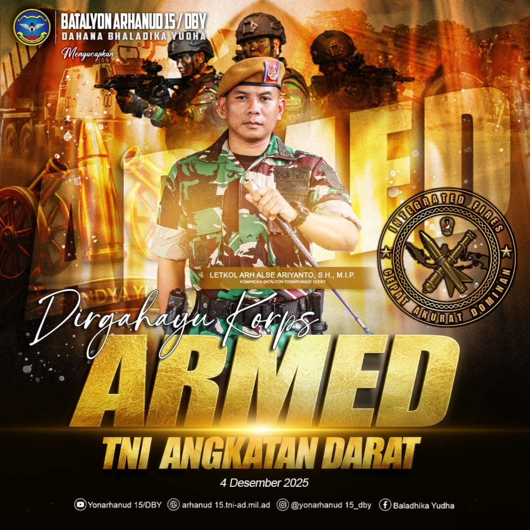 Semarang – Yonarhanud 15/DBY gelar acara tradisi pelepasan pindah satauan yang digelar di Makoyon Arhanud 15/ DBY. Jumat, 5/12/2025. Kegiatan dipimpin oleh Wakil Komandan Batalyon Arhanud 15/DBY Mayor Arh Yudha Putra Permono, S.S.T.Han, Adapun prajurit yang melaksanakan pindah satuan adalah Praka Fauzan Hanif Ihza R. yang akan melanjutkan tugas di Kodam V/Brawijaya. Rangkaian tradisi diawali dengan laporan Korp Raport, dilanjutkan penciuman Tunggul Yonarhanud 15/DBY sebagai bentuk penghormatan dan simbol kecintaan prajurit kepada satuan. Acara tambahan berupa pemberian kenang-kenangan berupa medali dan piagam penghargaan, serta penyampaian ucapan selamat jalan oleh Wakil…